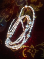 ところどころに中くらいのパールが7粒連なり、ゴールドも入りロングでものすごく贅沢!
