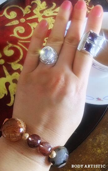 それぞれの石達がとってもポジティブなメッセージを放ち、身につける人を元気づけ情熱的で喜びのある毎日を送るように促してくれているかのようなコンビネーションです。