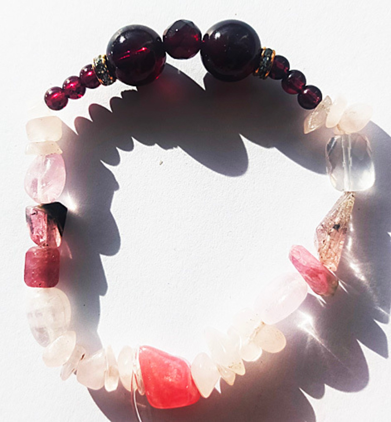 オリジナルから!瞬発力、粘り強さ、健康、情熱、ポジティブさ、勇気、自信(ガーネット×ローズクオーツ×モルガナイト×ピンク&ウォーターメロントルマリン×ロードクロサイトブレスレット)