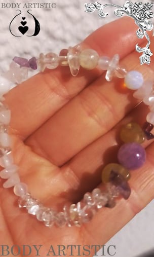その他癒しと浄化の水晶や自分を愛するローズクオーツ、旅のお守りのムーンストーン、癒し、強さ、愛の石でもあるパープルのスーパーセブンなど細かく入っていてあなたを優しくサポート!