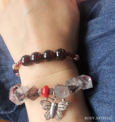 オリジナルから!"赤富士と蝶" 強い精神力と決断力、行動力を高める!(レッドファントムクオーツブレスレット)